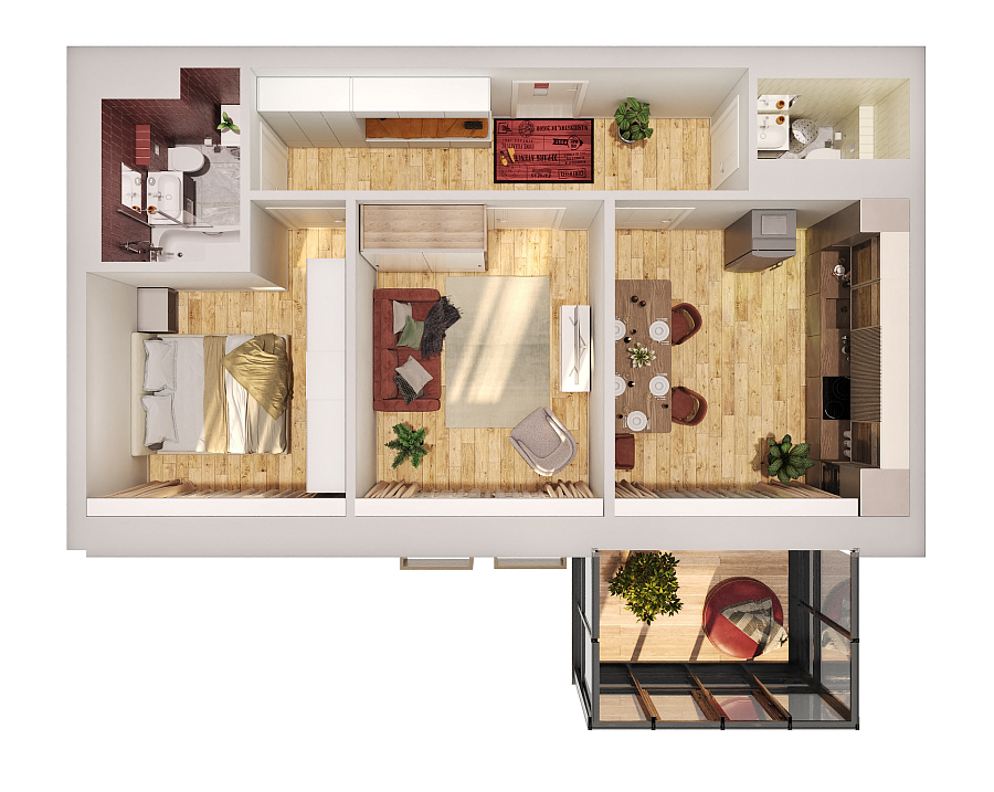 Визуализация и планировка, в том числе в части площади и размера стен жилого помещения, используемых цветовых решений на плане являются проектными и могут быть изменены в ходе строительства объекта. Цена квартиры зависит от выбранной программы и акции, актуальные цены можно уточнить у менеджеров и на момент заключения договора.