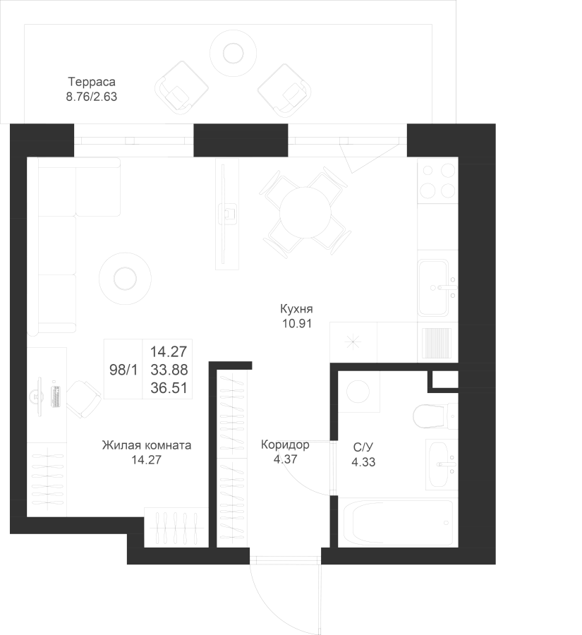 Визуализация и планировка, в том числе в части площади и размера стен жилого помещения, используемых цветовых решений на плане являются проектными и могут быть изменены в ходе строительства объекта. Цена квартиры зависит от выбранной программы и акции, актуальные цены можно уточнить у менеджеров и на момент заключения договора.