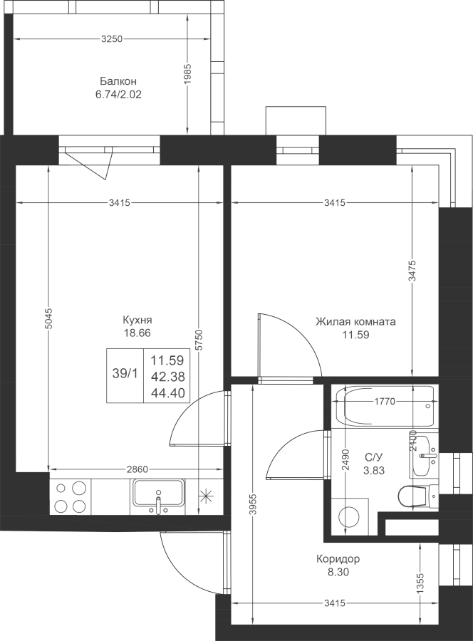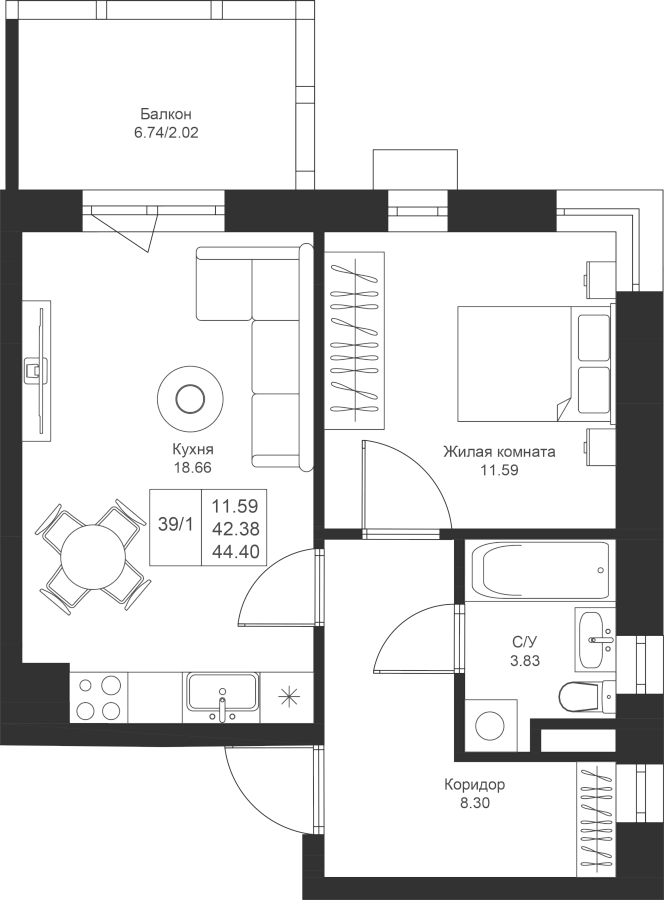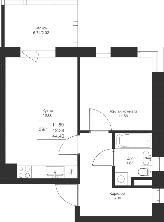 44.40 м²