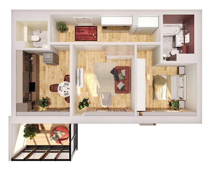 Визуализация и планировка, в том числе в части площади и размера стен жилого помещения, используемых цветовых решений на плане являются проектными и могут быть изменены в ходе строительства объекта. Цена квартиры зависит от выбранной программы и акции, актуальные цены можно уточнить у менеджеров и на момент заключения договора.