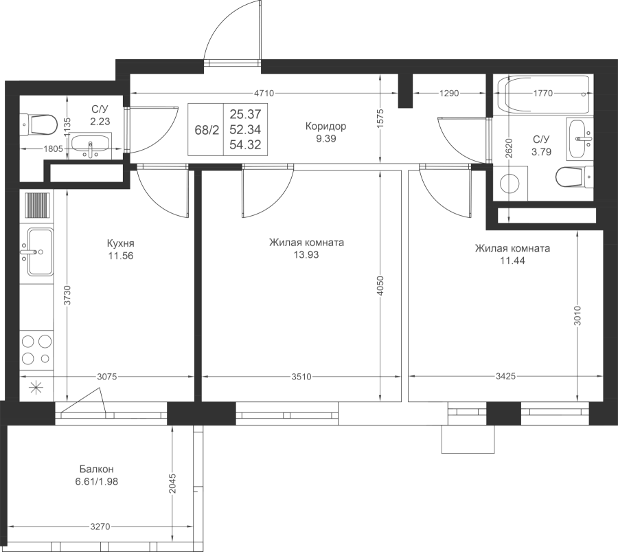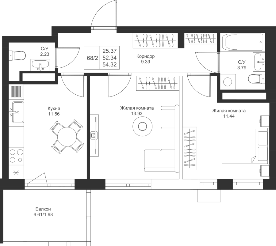 54.32 м²