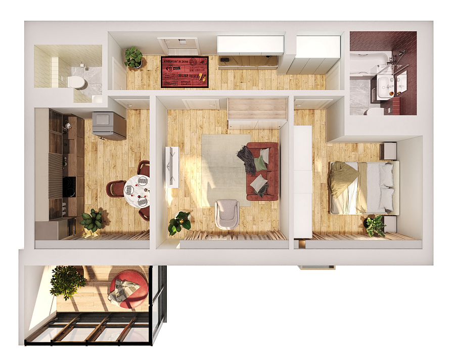Визуализация и планировка, в том числе в части площади и размера стен жилого помещения, используемых цветовых решений на плане являются проектными и могут быть изменены в ходе строительства объекта. Цена квартиры зависит от выбранной программы и акции, актуальные цены можно уточнить у менеджеров и на момент заключения договора.