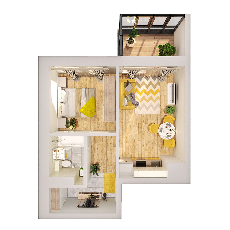 Визуализация и планировка, в том числе в части площади и размера стен жилого помещения, используемых цветовых решений на плане являются проектными и могут быть изменены в ходе строительства объекта. Цена квартиры зависит от выбранной программы и акции, актуальные цены можно уточнить у менеджеров и на момент заключения договора.