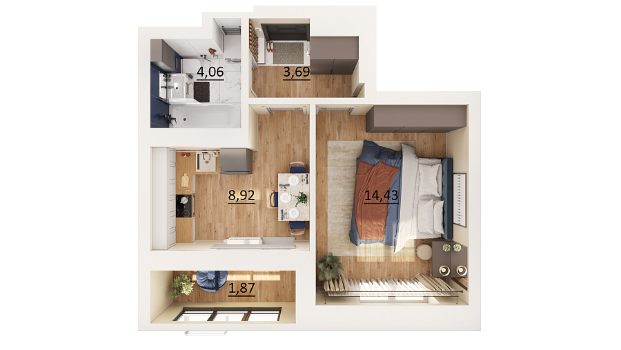 Визуализация и планировка, в том числе в части площади и размера стен жилого помещения, являются проектными и могут быть изменены в ходе строительства объекта. Цена квартиры зависит от выбранной программы и акции, актуальные цены можно уточнить у менеджеров и на момент заключения договора.