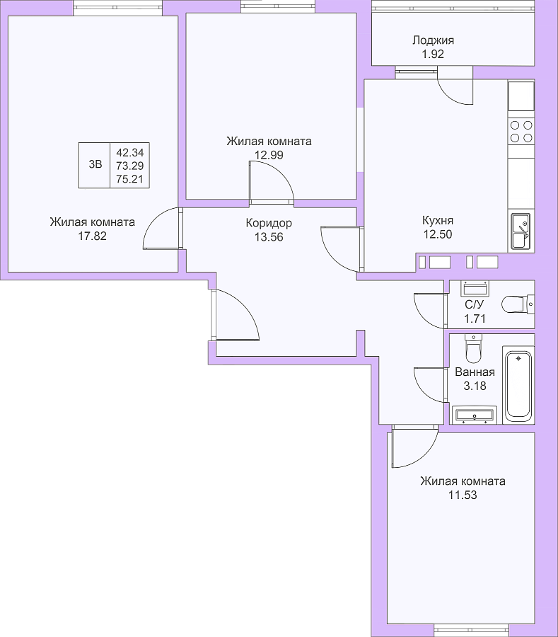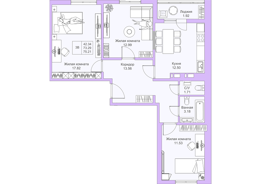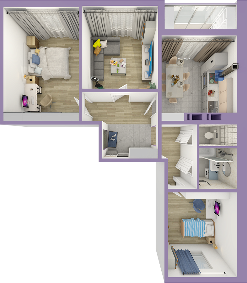 Визуализация и планировка, в том числе в части площади и размера стен жилого помещения, являются проектными и могут быть изменены в ходе строительства объекта. Цена квартиры зависит от выбранной программы и акции, актуальные цены можно уточнить у менеджеров и на момент заключения договора.