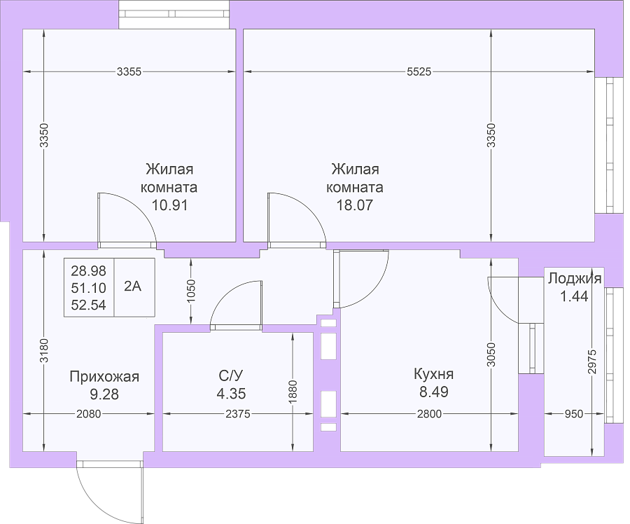 2-к квартира 53.1 м²