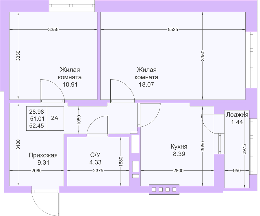 2-к квартира 52.8 м²