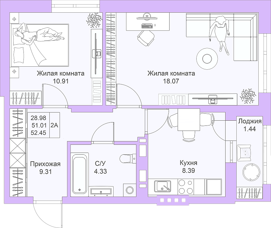 Визуализация и планировка, в том числе в части площади и размера стен жилого помещения, являются проектными и могут быть изменены в ходе строительства объекта. Цена квартиры зависит от выбранной программы и акции, актуальные цены можно уточнить у менеджеров и на момент заключения договора.