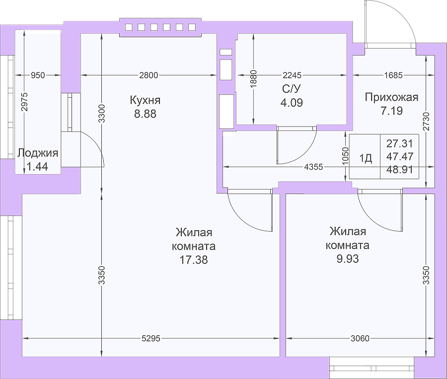 1-к квартира 48.9 м²