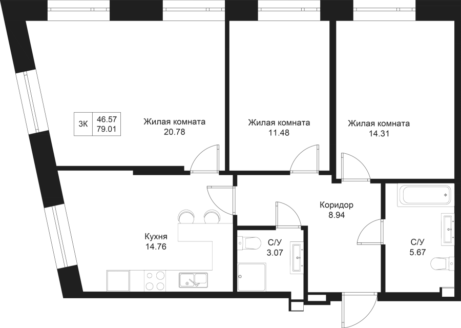 3-к квартира 79.01 м²