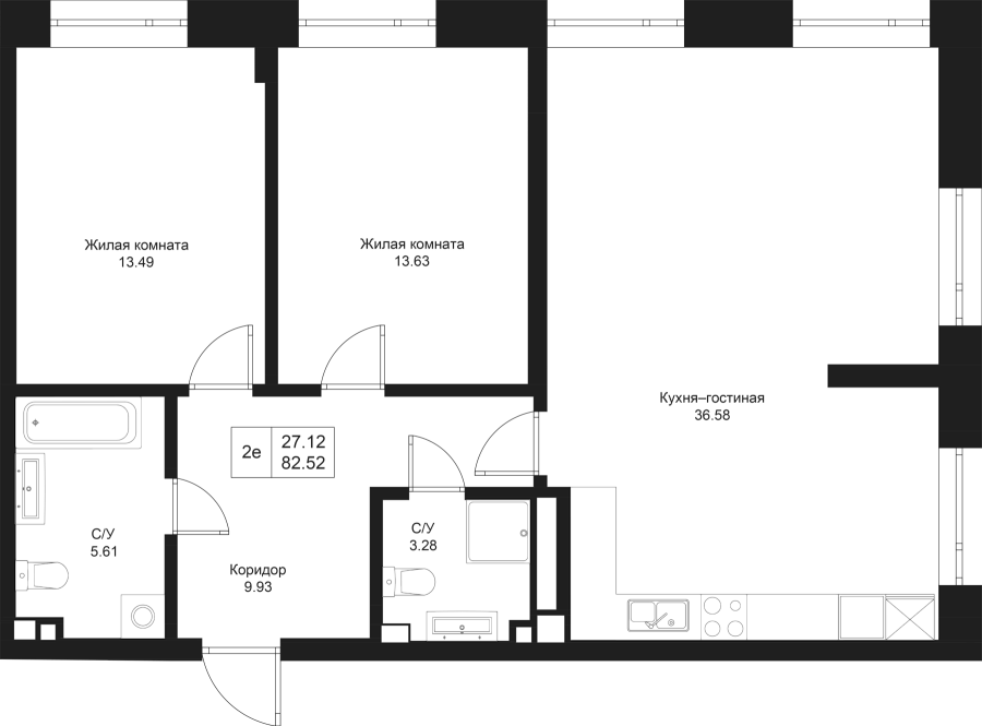 2-к квартира 82.52 м²