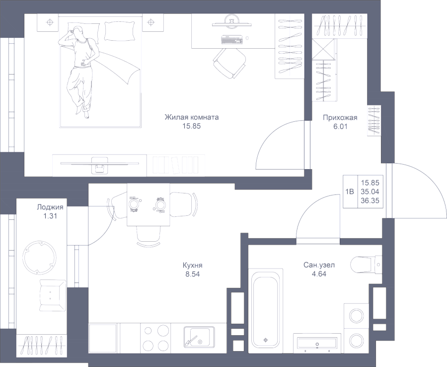 Визуализация и планировка, в том числе в части площади и размера стен жилого помещения, являются проектными и могут быть изменены в ходе строительства объекта. Цена квартиры зависит от выбранной программы и акции, актуальные цены можно уточнить у менеджеров и на момент заключения договора.