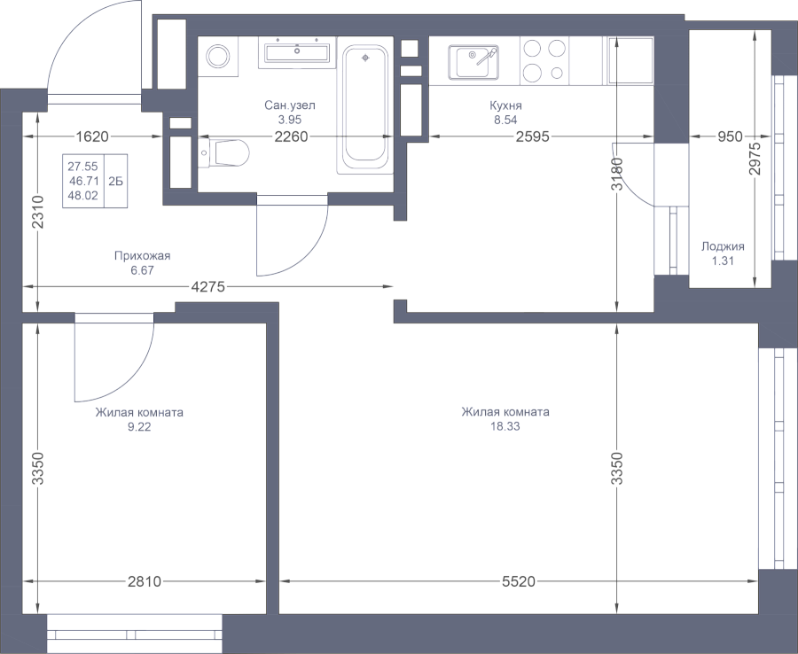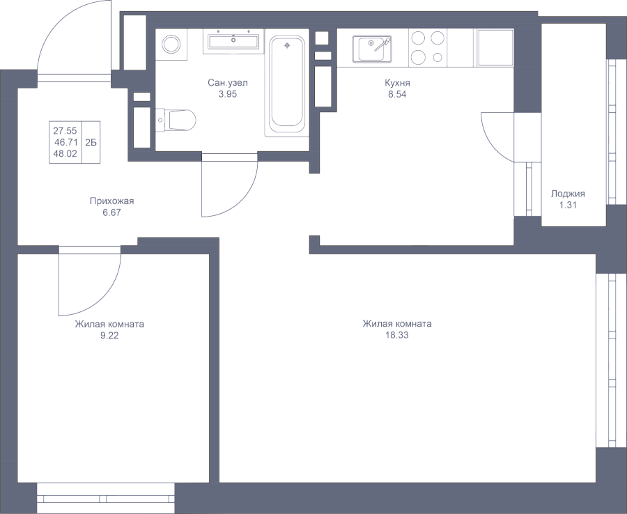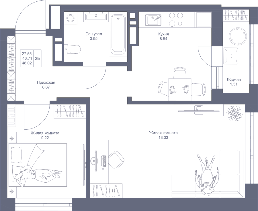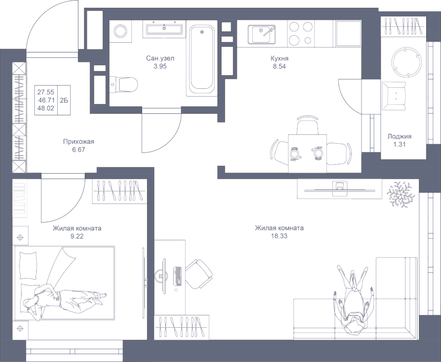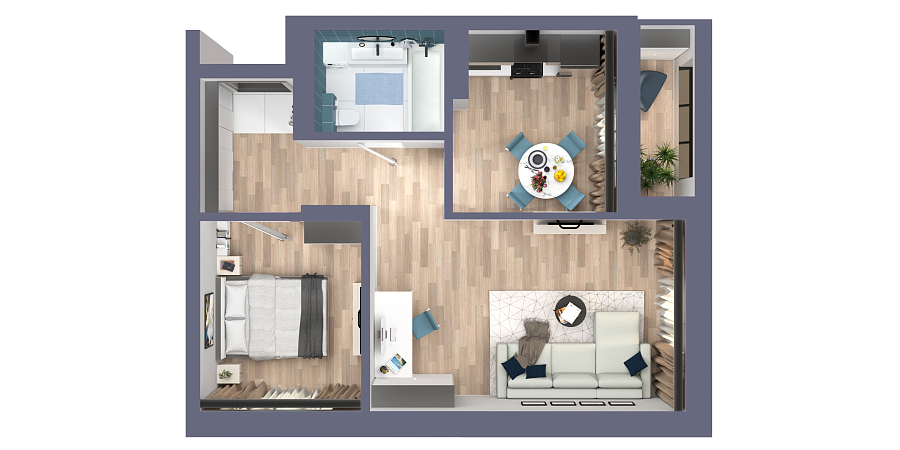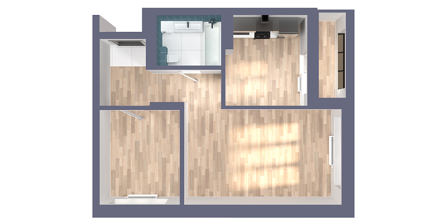 Визуализация и планировка, в том числе в части площади и размера стен жилого помещения, являются проектными и могут быть изменены в ходе строительства объекта. Цена квартиры зависит от выбранной программы и акции, актуальные цены можно уточнить у менеджеров и на момент заключения договора.