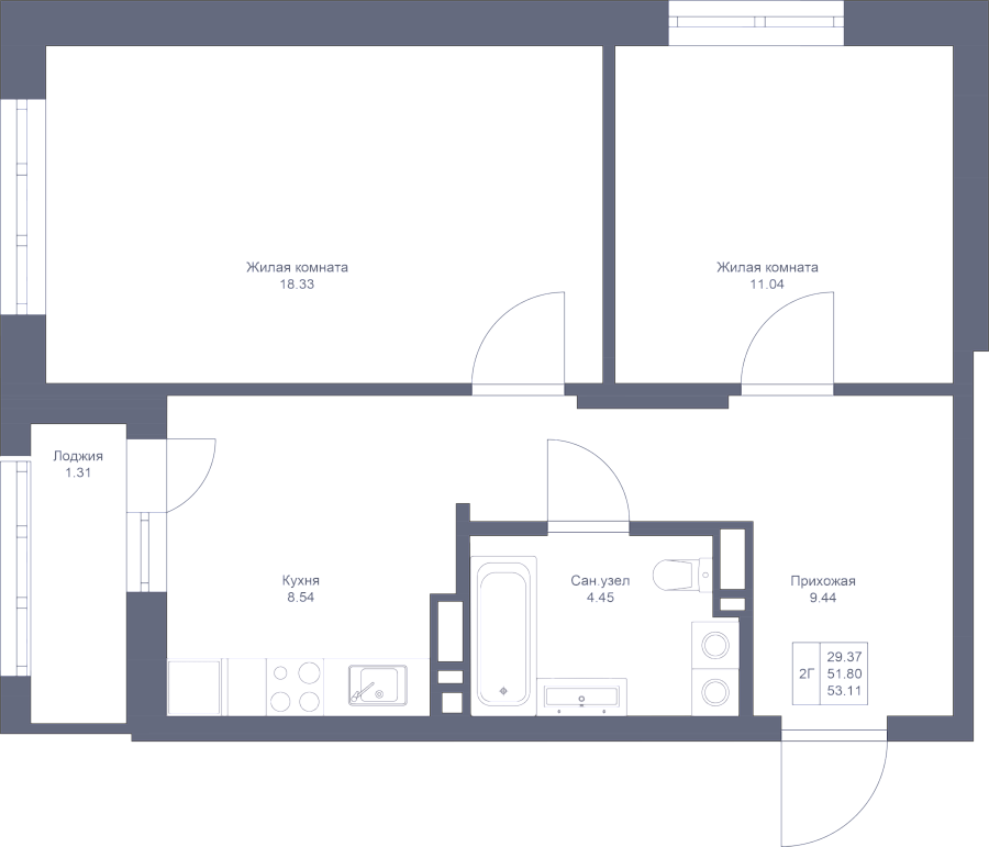Визуализация и планировка, в том числе в части площади и размера стен жилого помещения, являются проектными и могут быть изменены в ходе строительства объекта. Цена квартиры зависит от выбранной программы и акции, актуальные цены можно уточнить у менеджеров и на момент заключения договора.