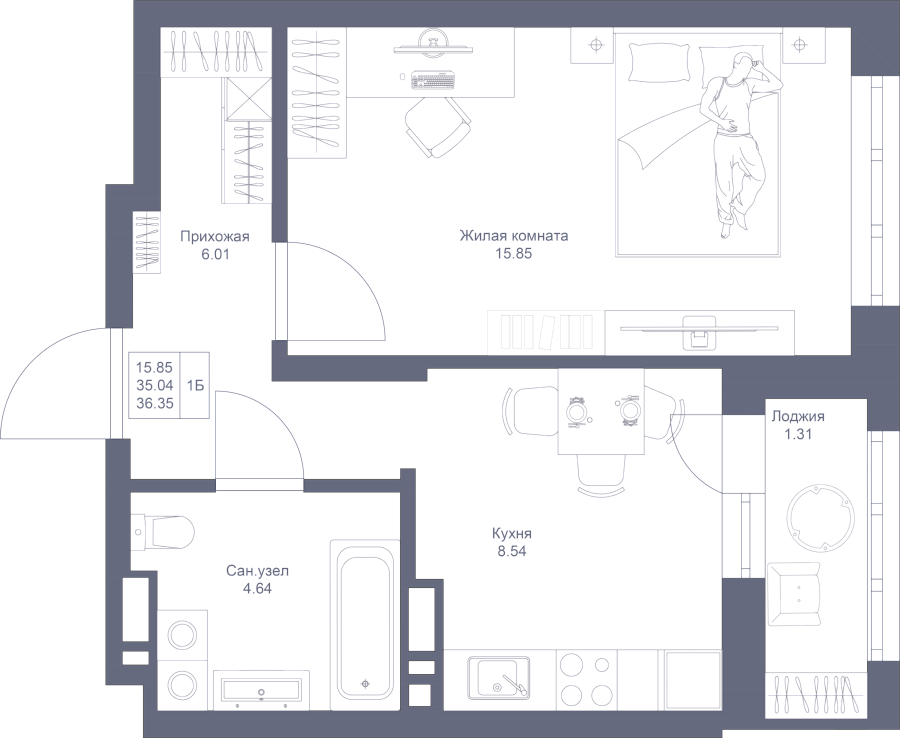 Визуализация и планировка, в том числе в части площади и размера стен жилого помещения, являются проектными и могут быть изменены в ходе строительства объекта. Цена квартиры зависит от выбранной программы и акции, актуальные цены можно уточнить у менеджеров и на момент заключения договора.
