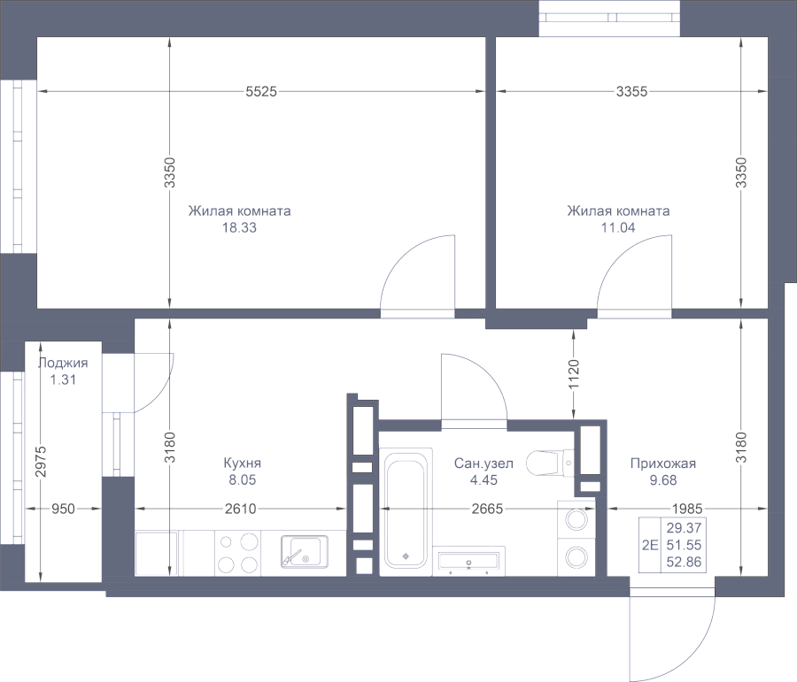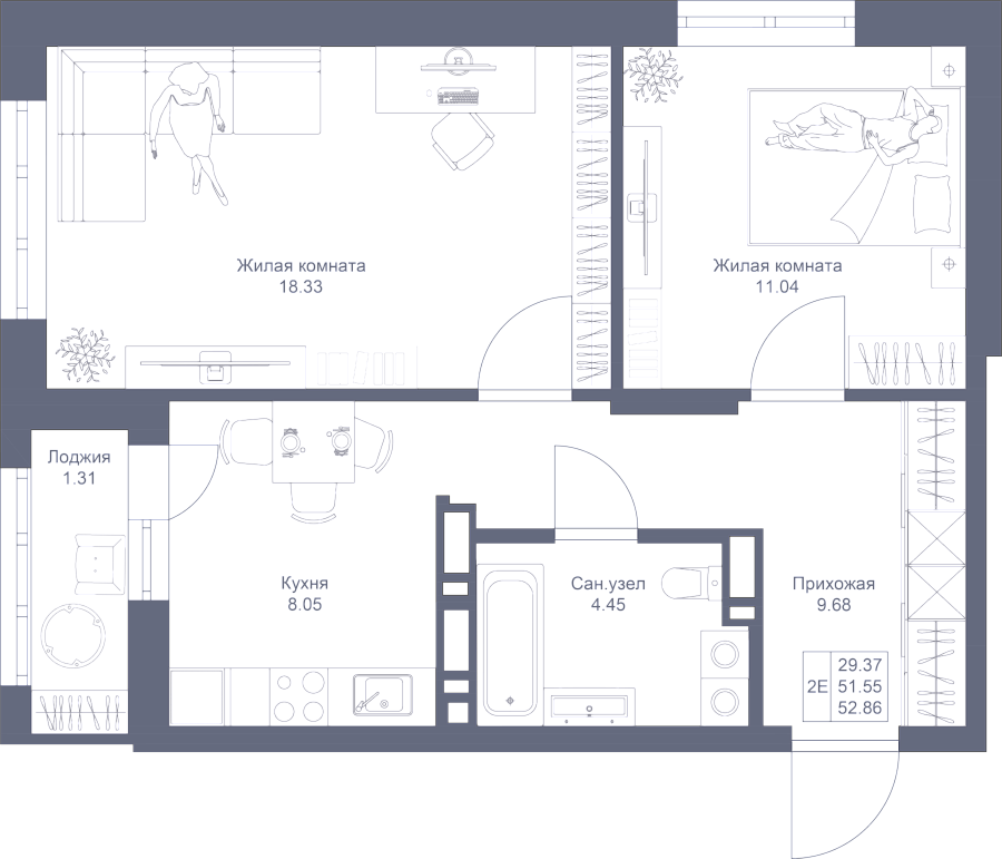 Визуализация и планировка, в том числе в части площади и размера стен жилого помещения, являются проектными и могут быть изменены в ходе строительства объекта. Цена квартиры зависит от выбранной программы и акции, актуальные цены можно уточнить у менеджеров и на момент заключения договора.