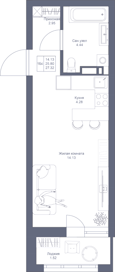 Визуализация и планировка, в том числе в части площади и размера стен жилого помещения, являются проектными и могут быть изменены в ходе строительства объекта. Цена квартиры зависит от выбранной программы и акции, актуальные цены можно уточнить у менеджеров и на момент заключения договора.