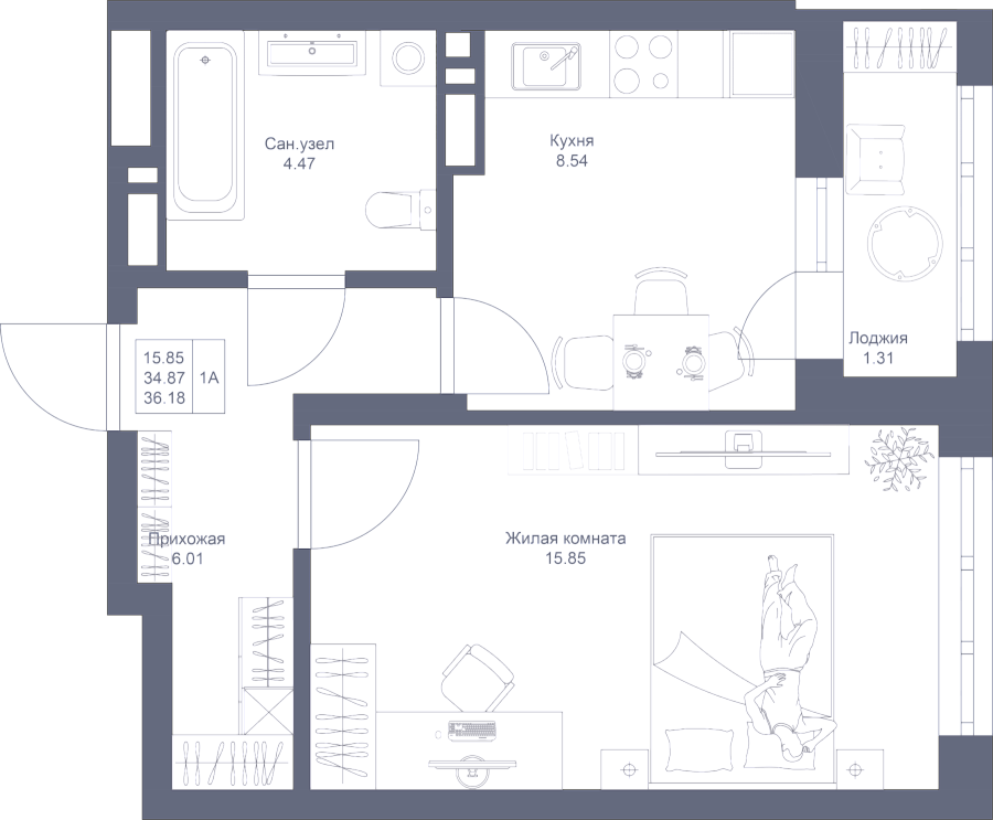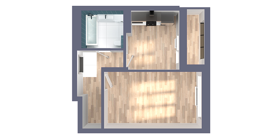 Визуализация и планировка, в том числе в части площади и размера стен жилого помещения, являются проектными и могут быть изменены в ходе строительства объекта. Цена квартиры зависит от выбранной программы и акции, актуальные цены можно уточнить у менеджеров и на момент заключения договора.