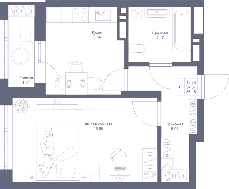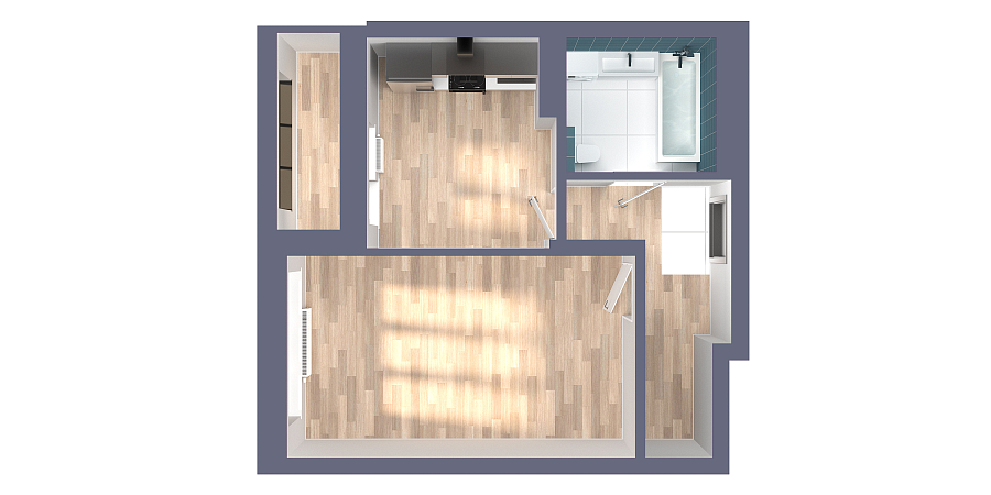 Визуализация и планировка, в том числе в части площади и размера стен жилого помещения, являются проектными и могут быть изменены в ходе строительства объекта. Цена квартиры зависит от выбранной программы и акции, актуальные цены можно уточнить у менеджеров и на момент заключения договора.