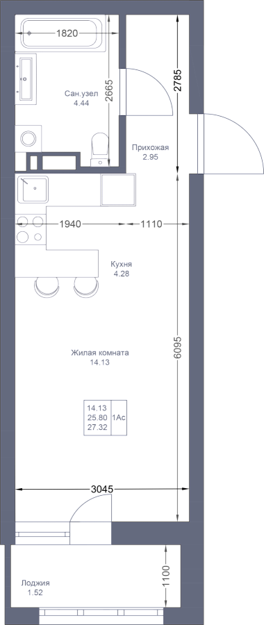 Студия 27.32 м²