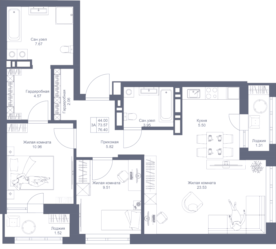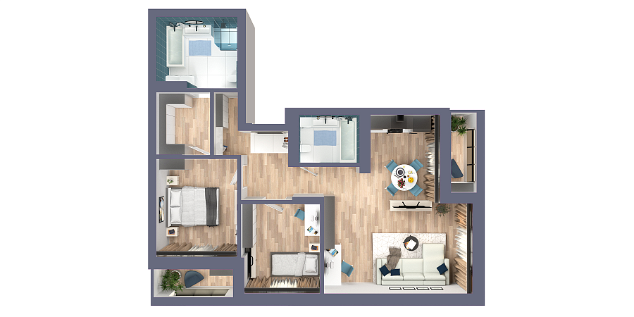 Визуализация и планировка, в том числе в части площади и размера стен жилого помещения, являются проектными и могут быть изменены в ходе строительства объекта. Цена квартиры зависит от выбранной программы и акции, актуальные цены можно уточнить у менеджеров и на момент заключения договора.