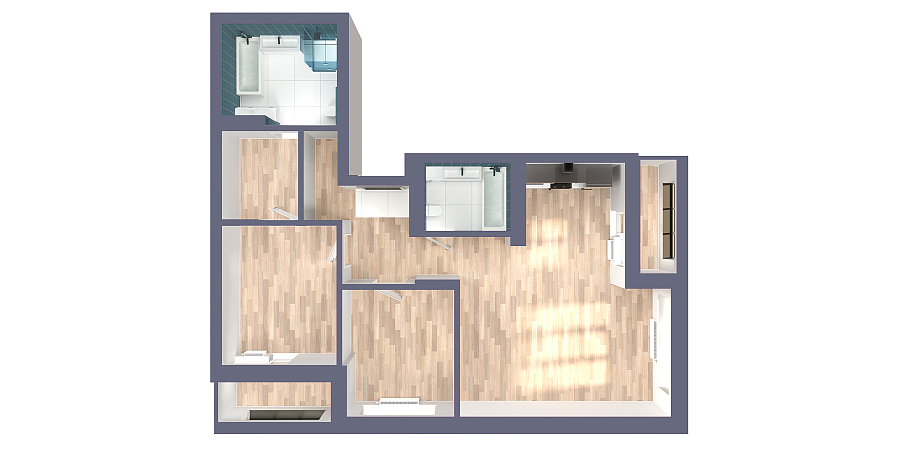 Визуализация и планировка, в том числе в части площади и размера стен жилого помещения, являются проектными и могут быть изменены в ходе строительства объекта. Цена квартиры зависит от выбранной программы и акции, актуальные цены можно уточнить у менеджеров и на момент заключения договора.