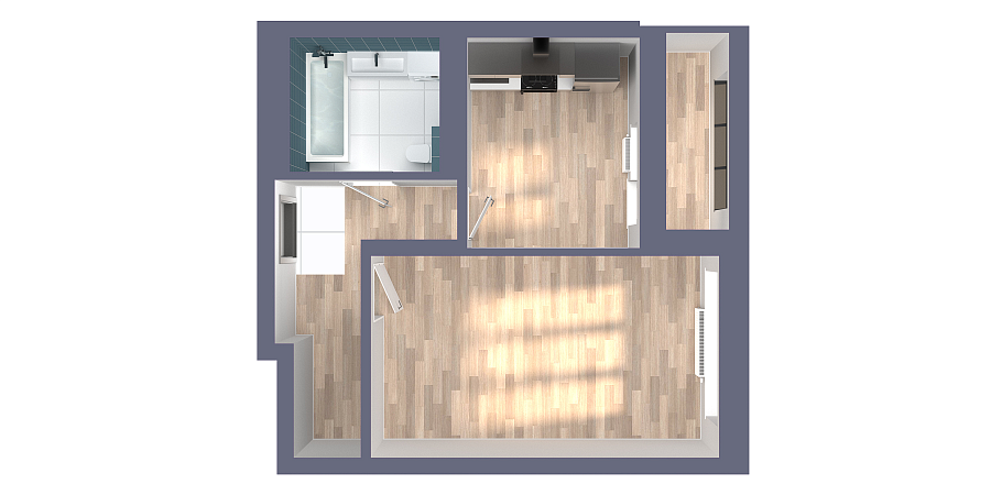 Визуализация и планировка, в том числе в части площади и размера стен жилого помещения, являются проектными и могут быть изменены в ходе строительства объекта. Цена квартиры зависит от выбранной программы и акции, актуальные цены можно уточнить у менеджеров и на момент заключения договора.