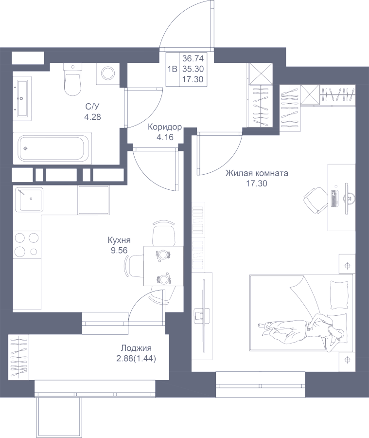 Визуализация и планировка, в том числе в части площади и размера стен жилого помещения, являются проектными и могут быть изменены в ходе строительства объекта. Цена квартиры зависит от выбранной программы и акции, актуальные цены можно уточнить у менеджеров и на момент заключения договора.