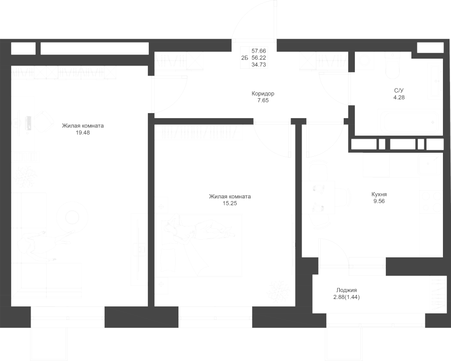 Визуализация и планировка, в том числе в части площади и размера стен жилого помещения, являются проектными и могут быть изменены в ходе строительства объекта. Цена квартиры зависит от выбранной программы и акции, актуальные цены можно уточнить у менеджеров и на момент заключения договора.