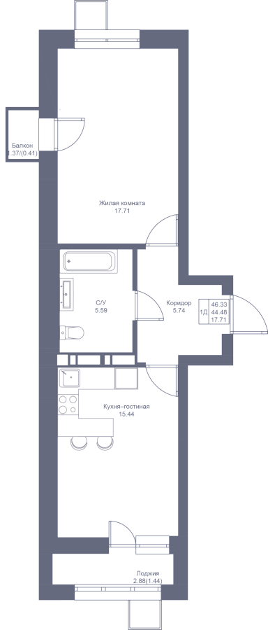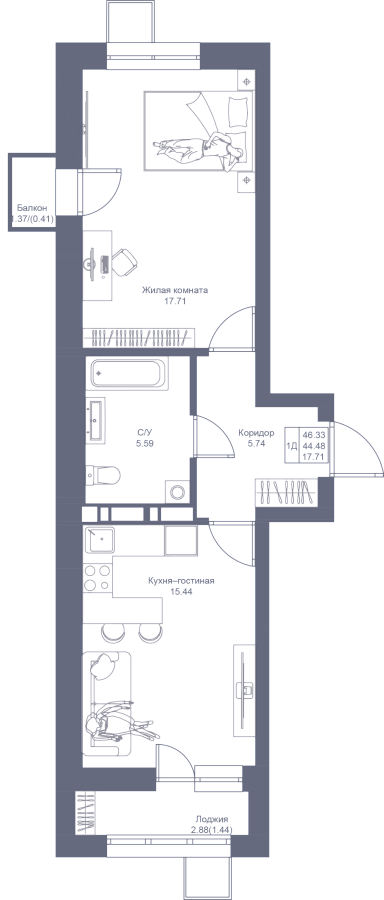 Визуализация и планировка, в том числе в части площади и размера стен жилого помещения, являются проектными и могут быть изменены в ходе строительства объекта. Цена квартиры зависит от выбранной программы и акции, актуальные цены можно уточнить у менеджеров и на момент заключения договора.
