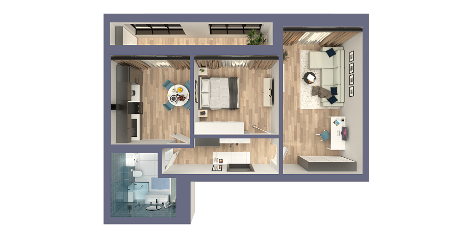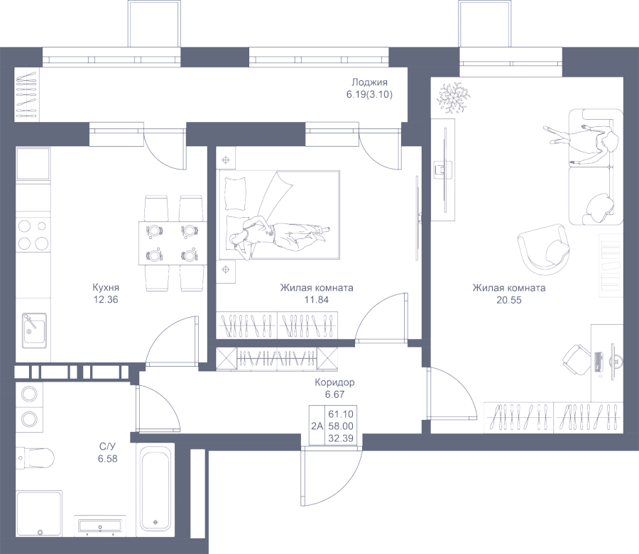 Визуализация и планировка, в том числе в части площади и размера стен жилого помещения, являются проектными и могут быть изменены в ходе строительства объекта. Цена квартиры зависит от выбранной программы и акции, актуальные цены можно уточнить у менеджеров и на момент заключения договора.