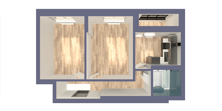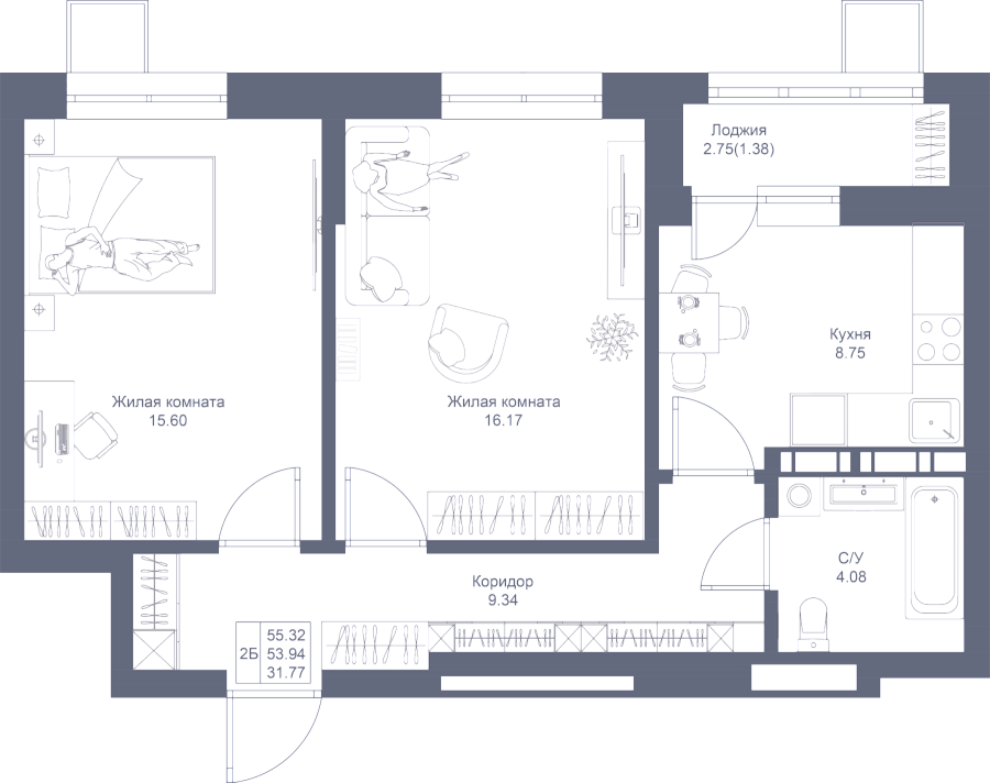 Визуализация и планировка, в том числе в части площади и размера стен жилого помещения, являются проектными и могут быть изменены в ходе строительства объекта. Цена квартиры зависит от выбранной программы и акции, актуальные цены можно уточнить у менеджеров и на момент заключения договора.