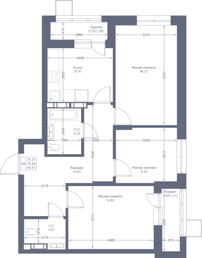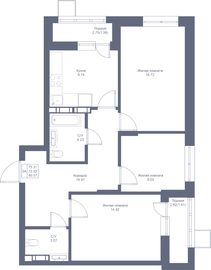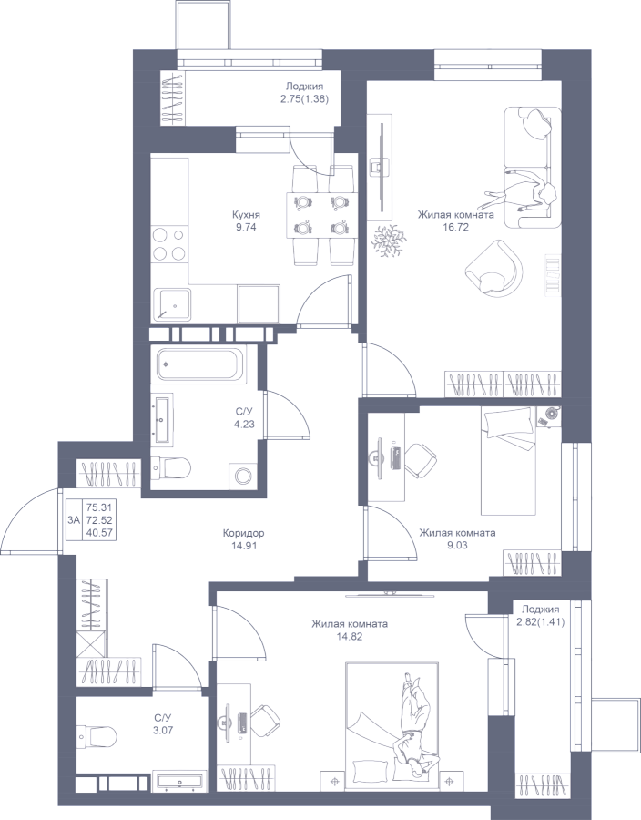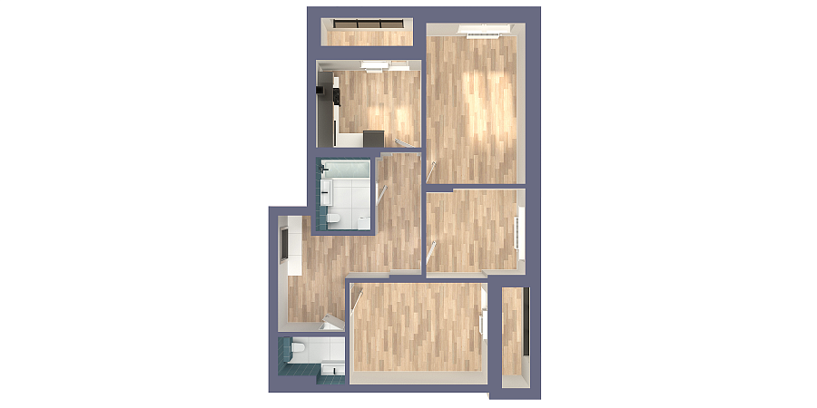 Визуализация и планировка, в том числе в части площади и размера стен жилого помещения, являются проектными и могут быть изменены в ходе строительства объекта. Цена квартиры зависит от выбранной программы и акции, актуальные цены можно уточнить у менеджеров и на момент заключения договора.