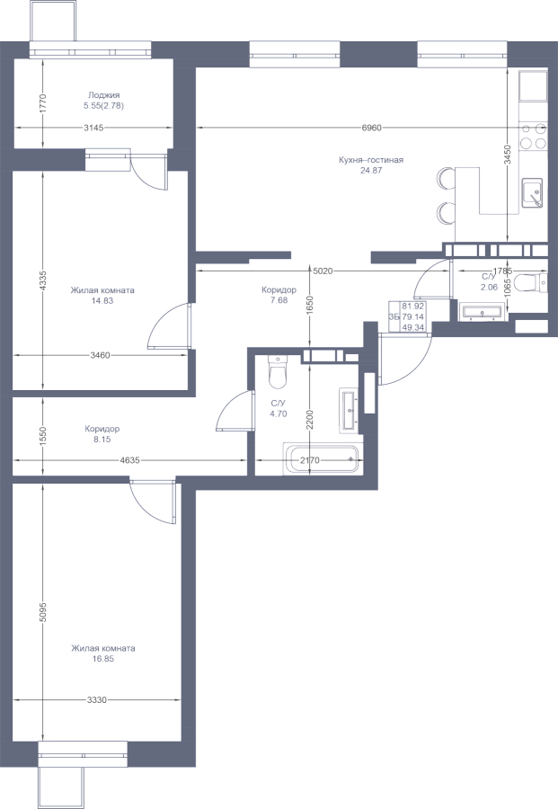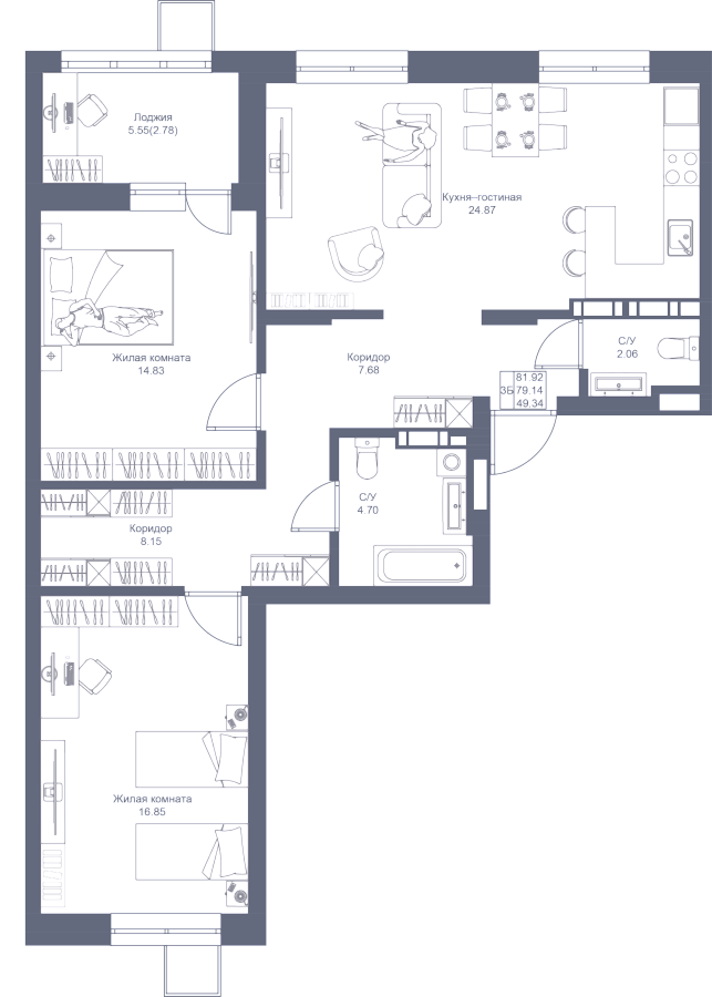 Визуализация и планировка, в том числе в части площади и размера стен жилого помещения, являются проектными и могут быть изменены в ходе строительства объекта. Цена квартиры зависит от выбранной программы и акции, актуальные цены можно уточнить у менеджеров и на момент заключения договора.