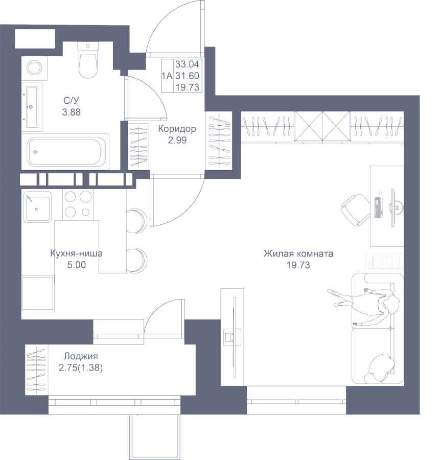 Визуализация и планировка, в том числе в части площади и размера стен жилого помещения, являются проектными и могут быть изменены в ходе строительства объекта. Цена квартиры зависит от выбранной программы и акции, актуальные цены можно уточнить у менеджеров и на момент заключения договора.