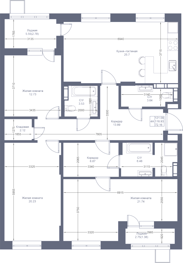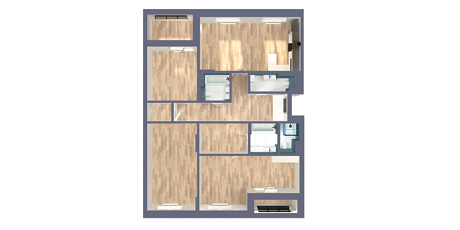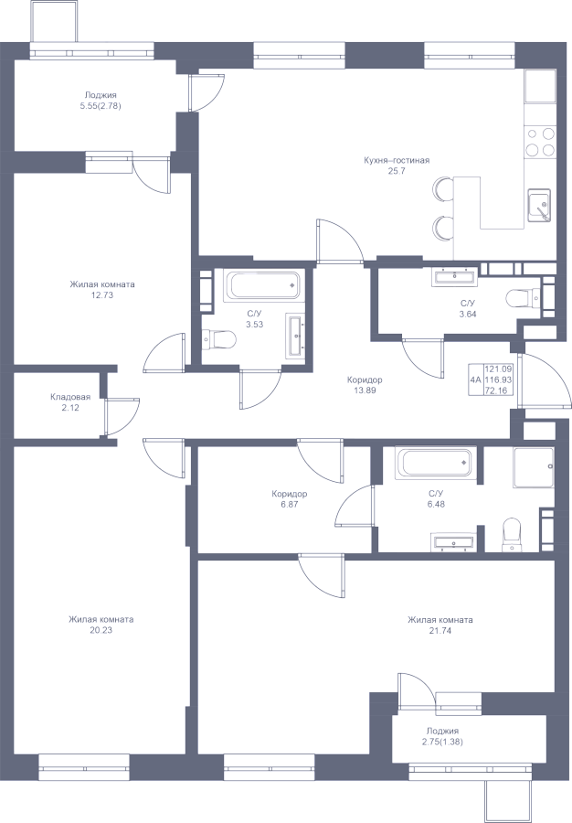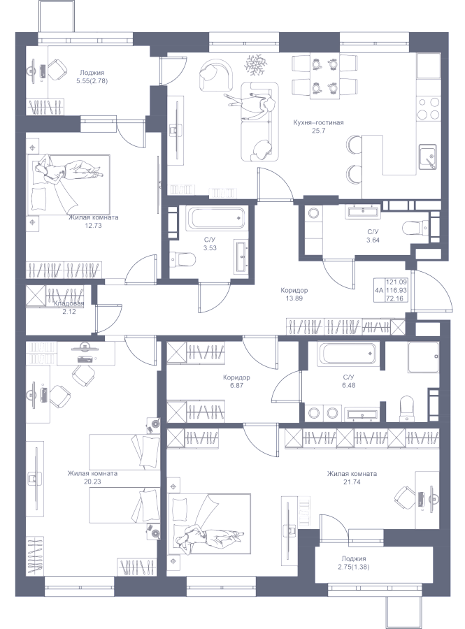 Визуализация и планировка, в том числе в части площади и размера стен жилого помещения, являются проектными и могут быть изменены в ходе строительства объекта. Цена квартиры зависит от выбранной программы и акции, актуальные цены можно уточнить у менеджеров и на момент заключения договора.