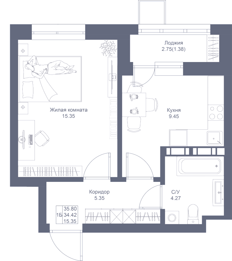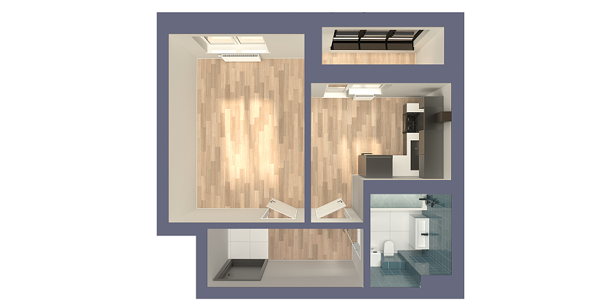 Визуализация и планировка, в том числе в части площади и размера стен жилого помещения, являются проектными и могут быть изменены в ходе строительства объекта. Цена квартиры зависит от выбранной программы и акции, актуальные цены можно уточнить у менеджеров и на момент заключения договора.