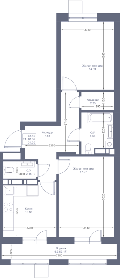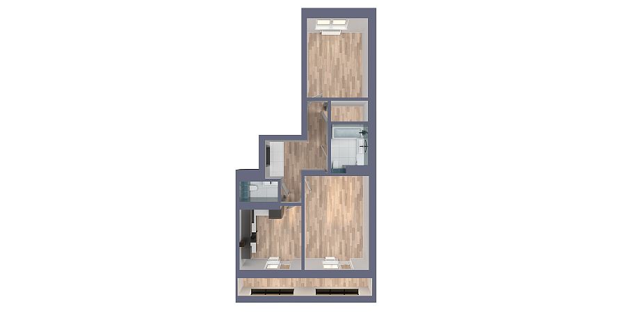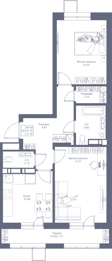Визуализация и планировка, в том числе в части площади и размера стен жилого помещения, являются проектными и могут быть изменены в ходе строительства объекта. Цена квартиры зависит от выбранной программы и акции, актуальные цены можно уточнить у менеджеров и на момент заключения договора.
