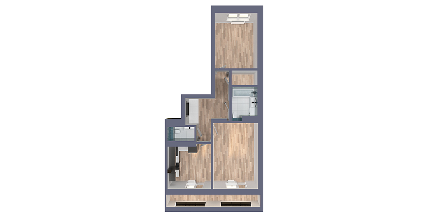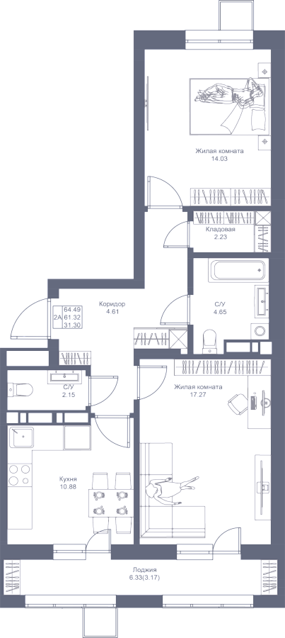 Визуализация и планировка, в том числе в части площади и размера стен жилого помещения, являются проектными и могут быть изменены в ходе строительства объекта. Цена квартиры зависит от выбранной программы и акции, актуальные цены можно уточнить у менеджеров и на момент заключения договора.