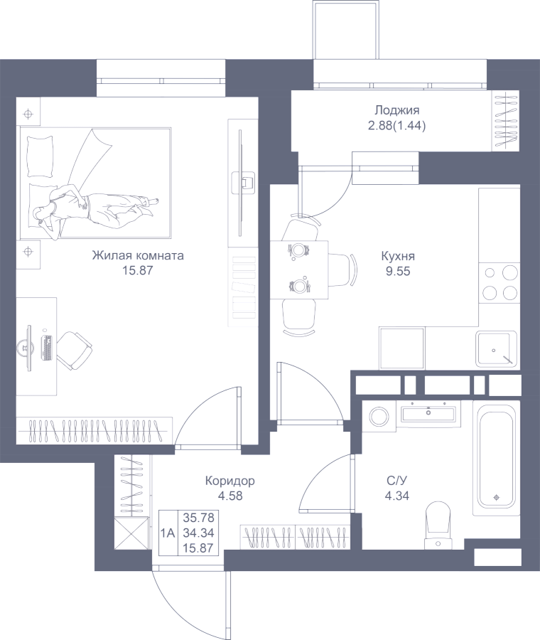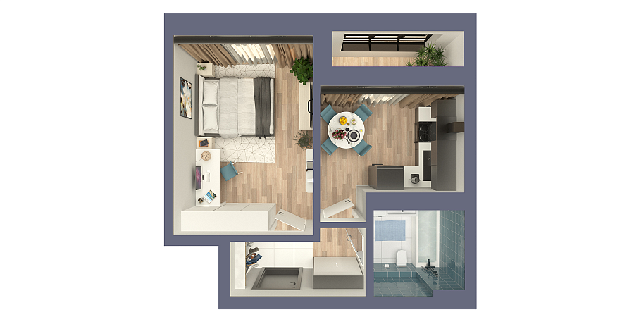 Визуализация и планировка, в том числе в части площади и размера стен жилого помещения, являются проектными и могут быть изменены в ходе строительства объекта. Цена квартиры зависит от выбранной программы и акции, актуальные цены можно уточнить у менеджеров и на момент заключения договора.