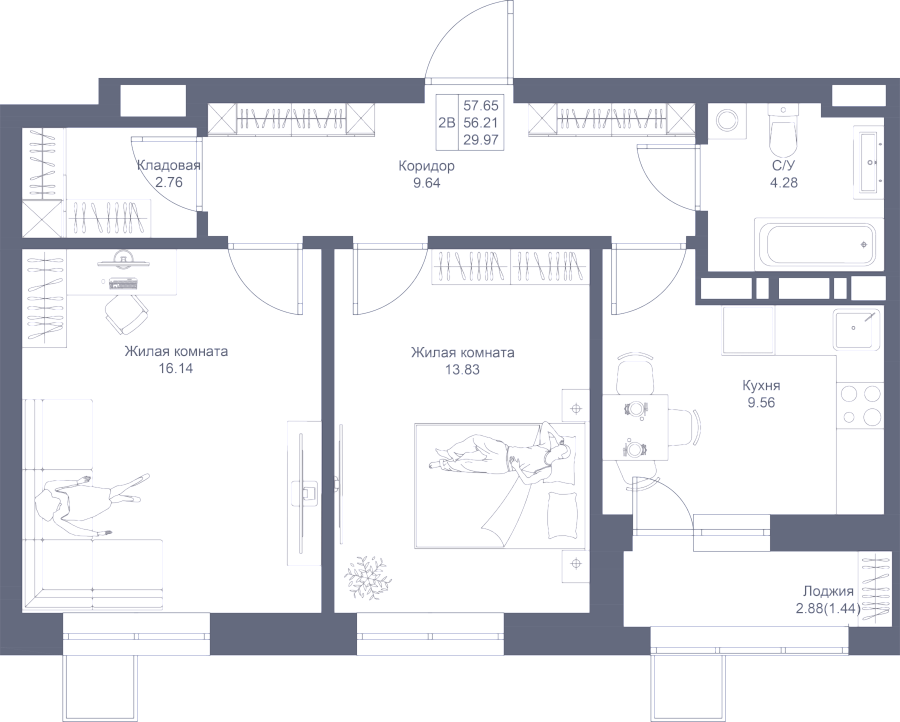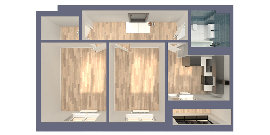 Визуализация и планировка, в том числе в части площади и размера стен жилого помещения, являются проектными и могут быть изменены в ходе строительства объекта. Цена квартиры зависит от выбранной программы и акции, актуальные цены можно уточнить у менеджеров и на момент заключения договора.