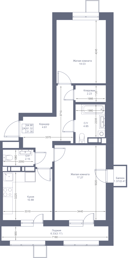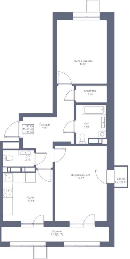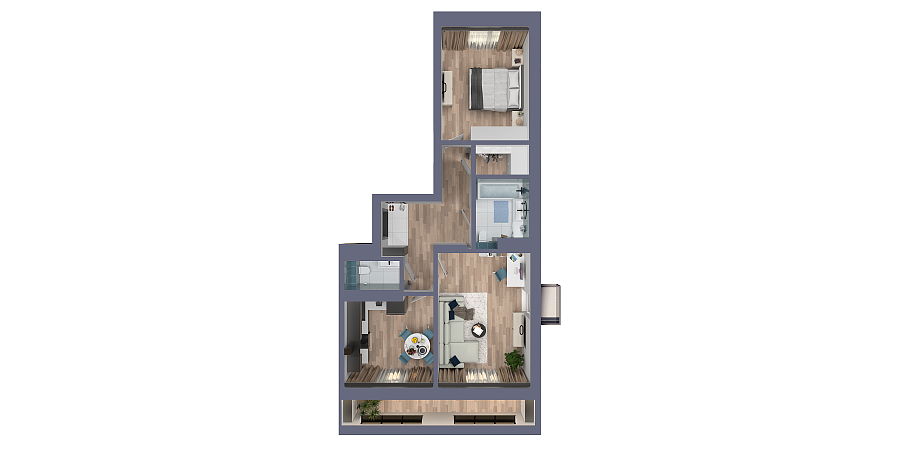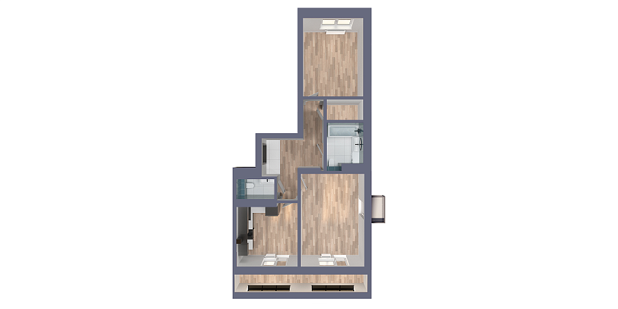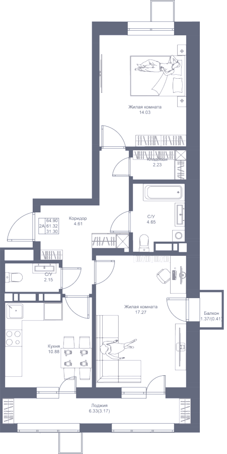 Визуализация и планировка, в том числе в части площади и размера стен жилого помещения, являются проектными и могут быть изменены в ходе строительства объекта. Цена квартиры зависит от выбранной программы и акции, актуальные цены можно уточнить у менеджеров и на момент заключения договора.