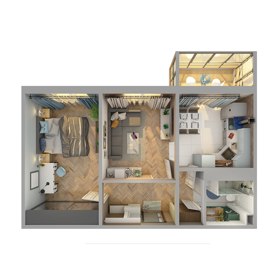 Визуализация и планировка, в том числе в части площади и размера стен жилого помещения, являются проектными и могут быть изменены в ходе строительства объекта. Цена квартиры зависит от выбранной программы и акции, актуальные цены можно уточнить у менеджеров и на момент заключения договора.