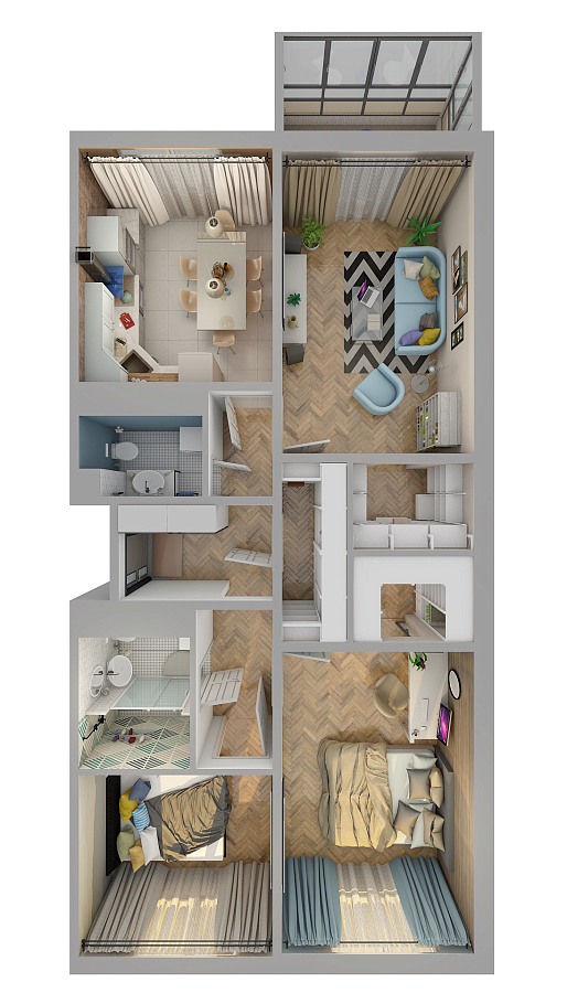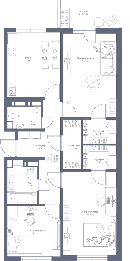 Визуализация и планировка, в том числе в части площади и размера стен жилого помещения, являются проектными и могут быть изменены в ходе строительства объекта. Цена квартиры зависит от выбранной программы и акции, актуальные цены можно уточнить у менеджеров и на момент заключения договора.