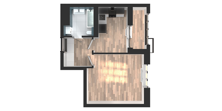 Визуализация и планировка, в том числе в части площади и размера стен жилого помещения, являются проектными и могут быть изменены в ходе строительства объекта. Цена квартиры зависит от выбранной программы и акции, актуальные цены можно уточнить у менеджеров и на момент заключения договора.