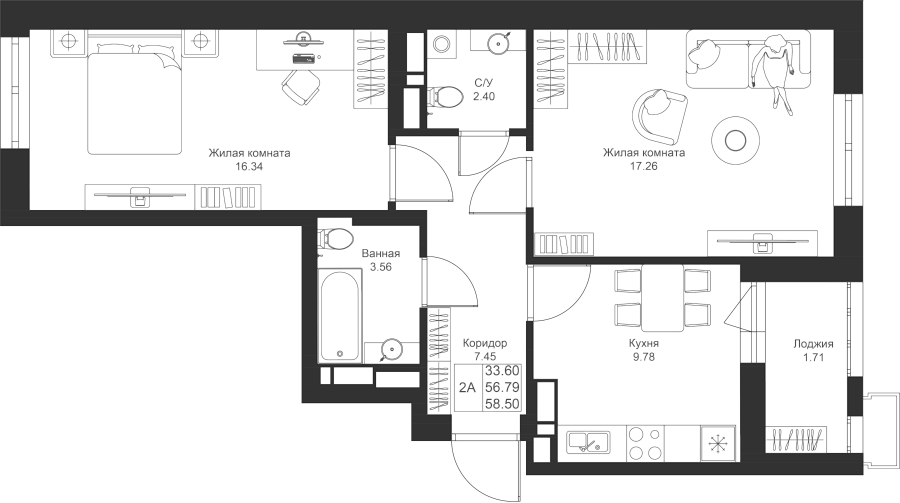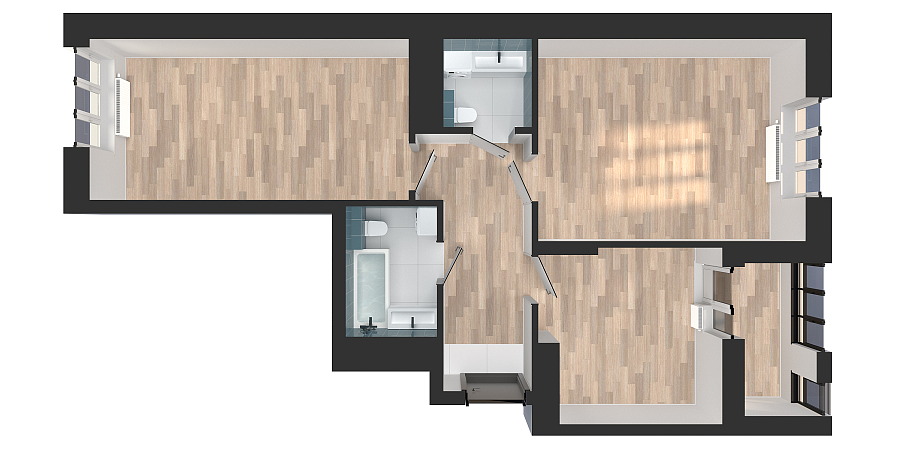 Визуализация и планировка, в том числе в части площади и размера стен жилого помещения, являются проектными и могут быть изменены в ходе строительства объекта. Цена квартиры зависит от выбранной программы и акции, актуальные цены можно уточнить у менеджеров и на момент заключения договора.