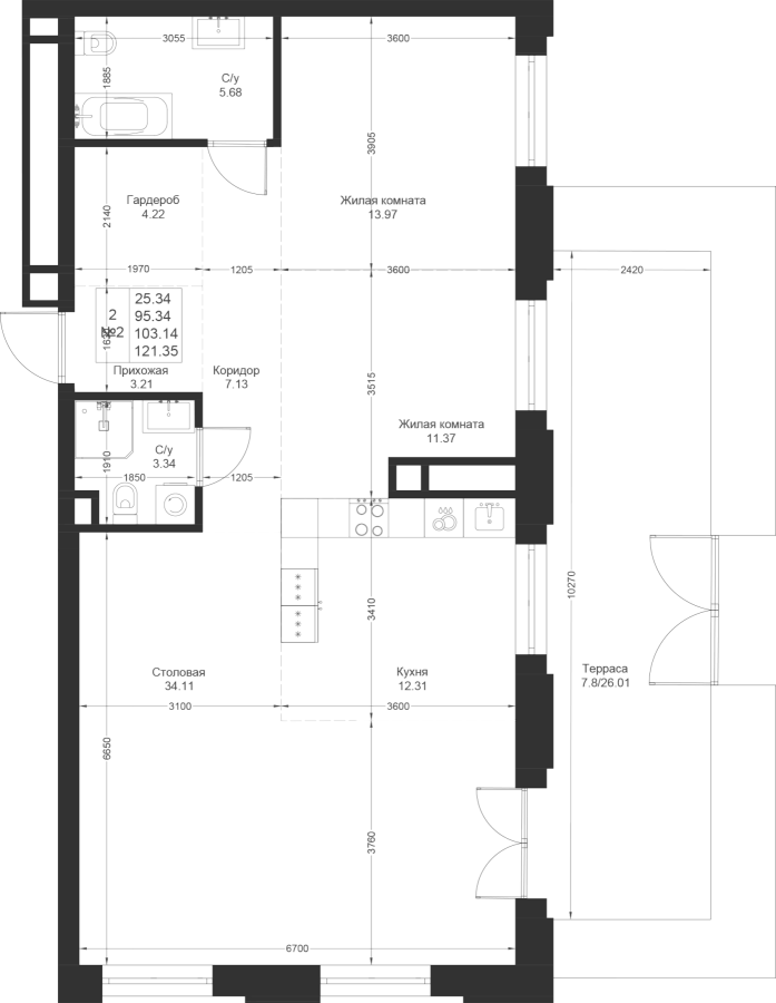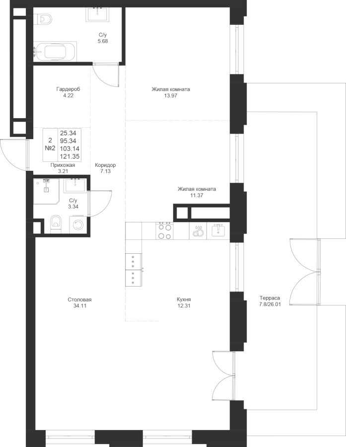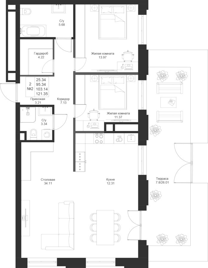 Визуализация и планировка, в том числе в части площади и размера стен жилого помещения, являются проектными и могут быть изменены в ходе строительства объекта. Цена квартиры зависит от выбранной программы и акции, актуальные цены можно уточнить у менеджеров и на момент заключения договора.