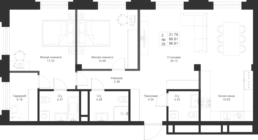 Визуализация и планировка, в том числе в части площади и размера стен жилого помещения, являются проектными и могут быть изменены в ходе строительства объекта. Цена квартиры зависит от выбранной программы и акции, актуальные цены можно уточнить у менеджеров и на момент заключения договора.