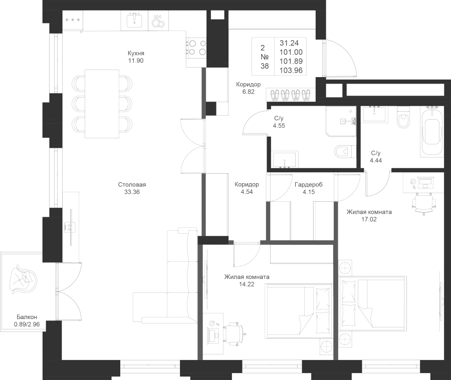 Визуализация и планировка, в том числе в части площади и размера стен жилого помещения, являются проектными и могут быть изменены в ходе строительства объекта. Цена квартиры зависит от выбранной программы и акции, актуальные цены можно уточнить у менеджеров и на момент заключения договора.