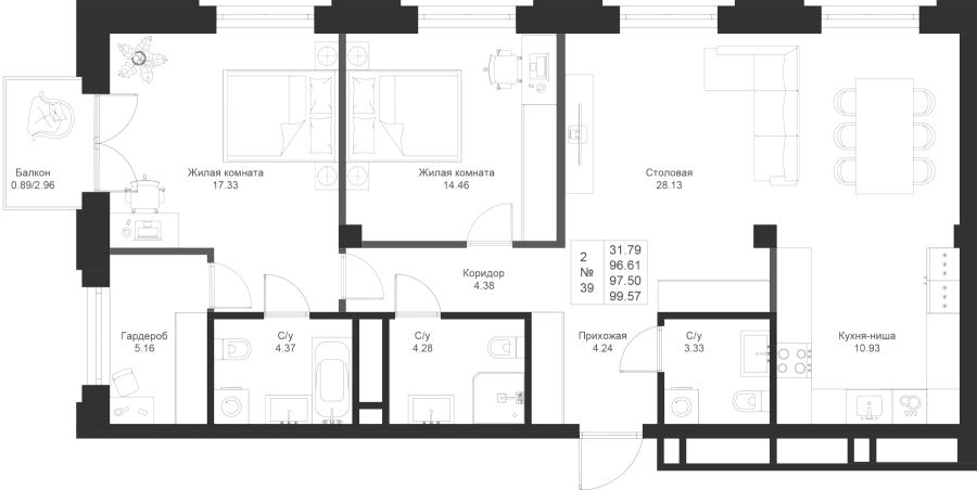 Визуализация и планировка, в том числе в части площади и размера стен жилого помещения, являются проектными и могут быть изменены в ходе строительства объекта. Цена квартиры зависит от выбранной программы и акции, актуальные цены можно уточнить у менеджеров и на момент заключения договора.